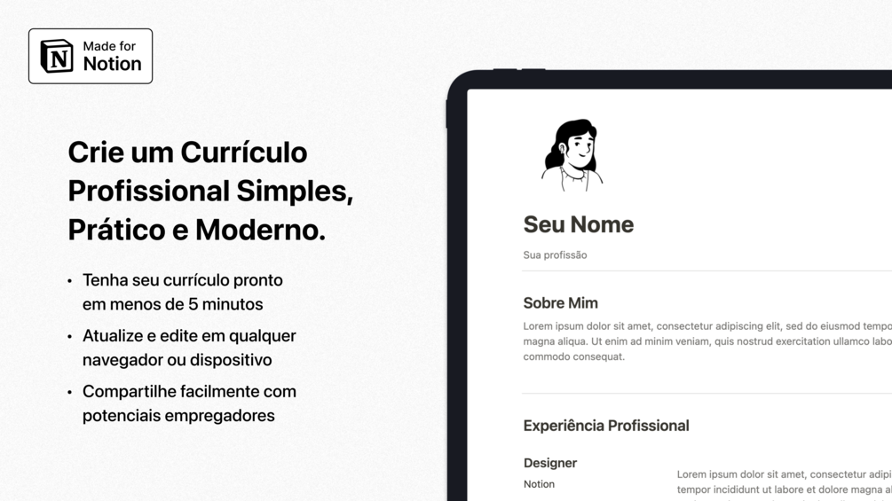 Crie um currículo profissional simples, prático e moderno.